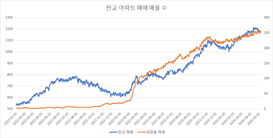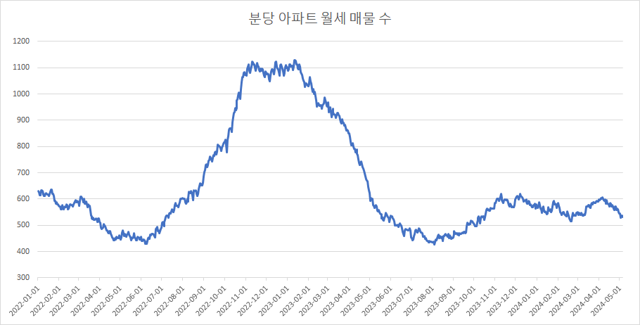 이제 분당구아파트 매물 수 변화를 확인하겠습니다.