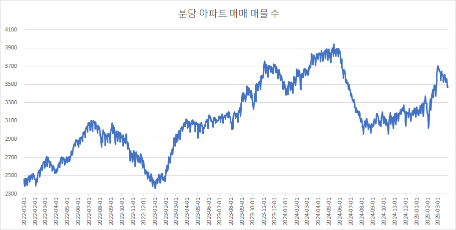 이제 분당구아파트 매물 수 변화를 확인하겠습니다.