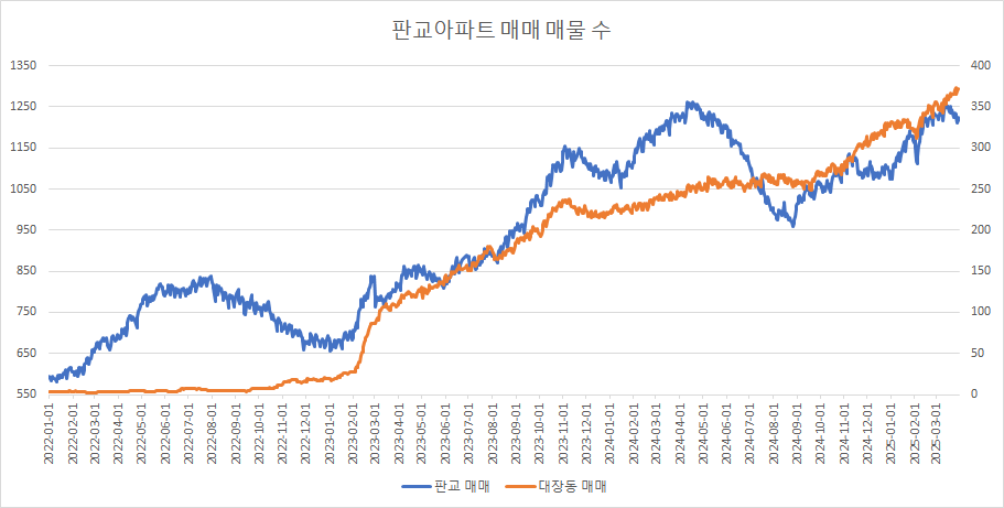 대장동아파트 매매 매물 수는 3주 연속 증가했습니다.