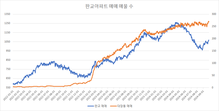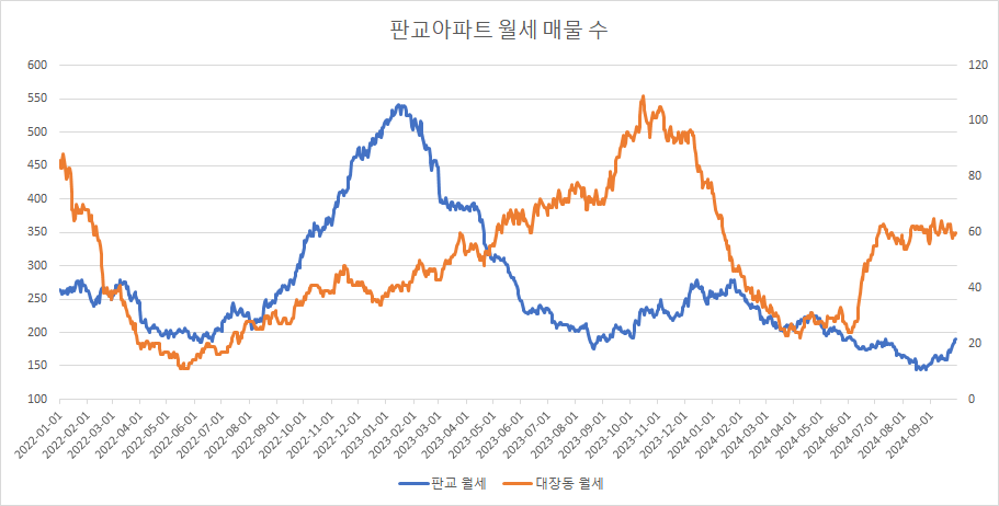 대장동아파트 월세 매물 수는 감소하고 있습니다,
