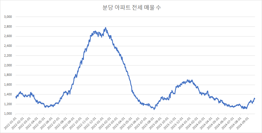 다음은 분당구아파트 전세 매물 수 변화를 확인하겠습니다.