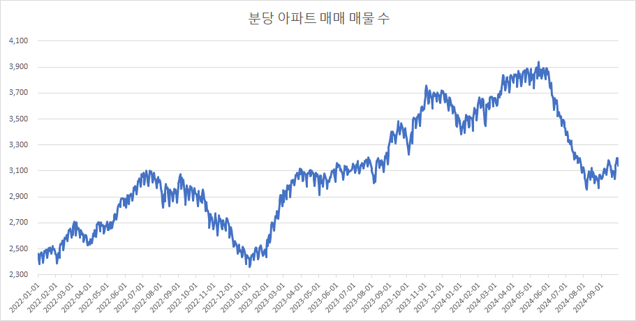 이제 분당구아파트 매물 수 변화를 확인하겠습니다.