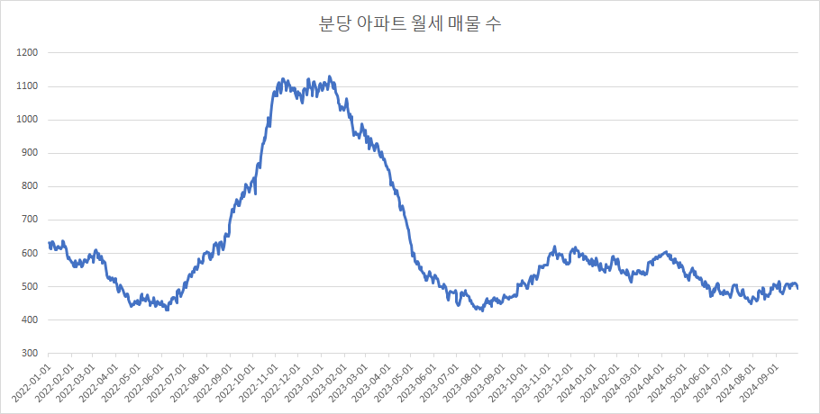마지막으로, 분당구아파트 월세 매물 수 변화를 확인하겠습니다.