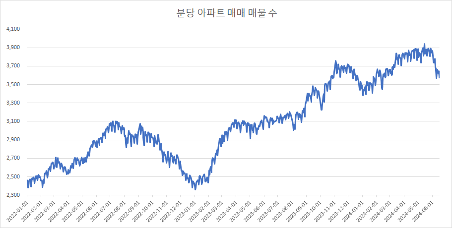 이제 분당구아파트 매물 수 변화를 확인하겠습니다.