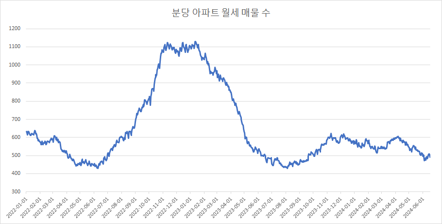 마지막으로, 분당구아파트 월세 매물 수 변화를 확인하겠습니다.