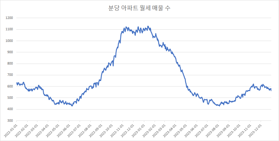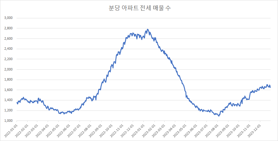 다음은 분당구 아파트 전세 매물 수 변화입니다.