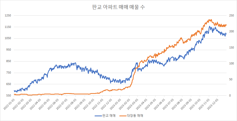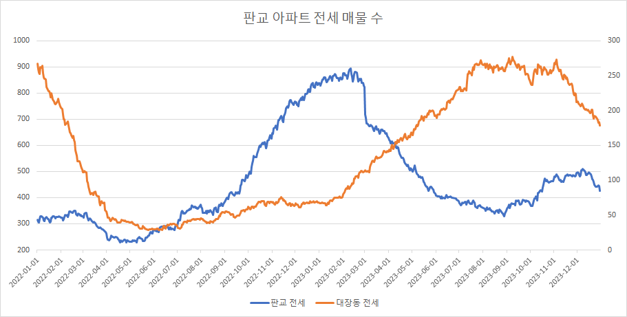 대장동 아파트 전세 매물 수 또한 급감을 이어가고 있습니다.