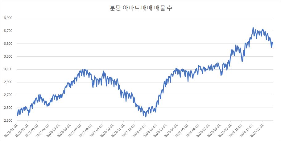 이제 분당구 아파트 매물 수 변화를 확인하도록 하겠습니다.