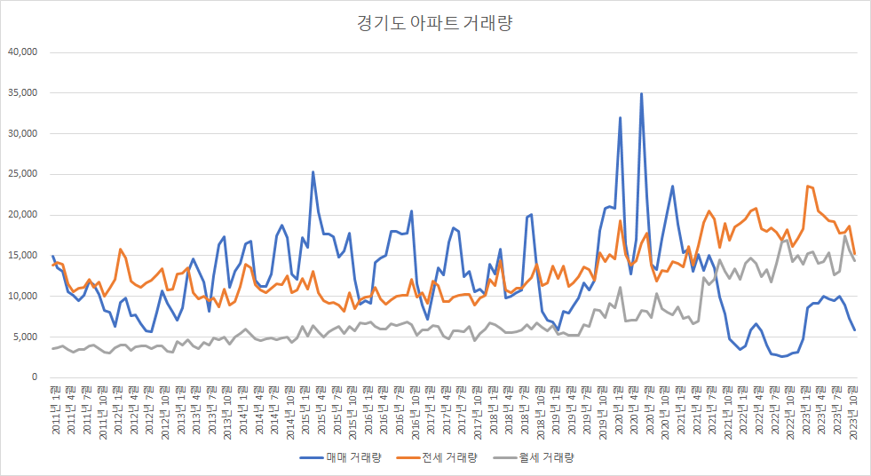 아래 표는 경기도 아파트 거래량입니다.