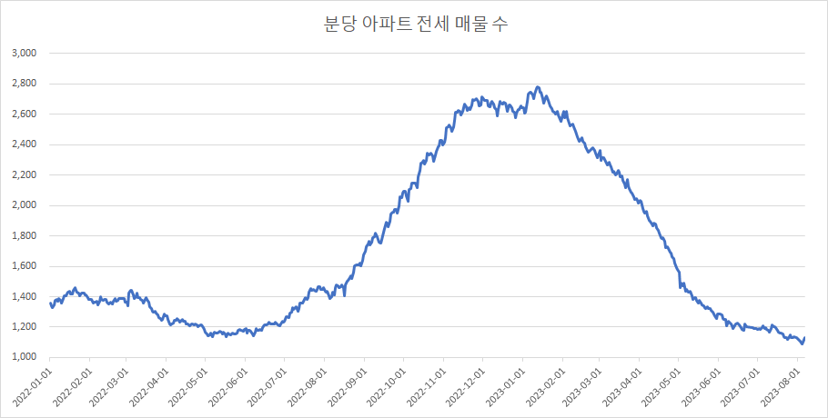 그럼에도 분당 아파트 전세 매물 수는 한 단계 더 감소를 시작하려는 듯합니다.