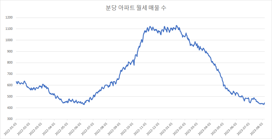 마지막으로 분당 아파트 월세 매물 수 변화입니다.