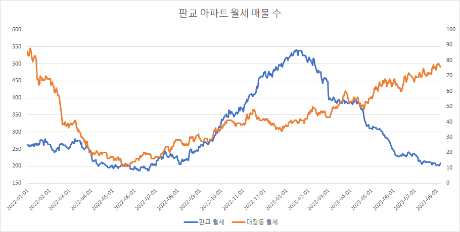판고 아파트 매매 매물 및 대장동 아파트 매매 매물 수도 동일한 현상으로 매물 수가 급감한 것으로 보이는 것 같습니다.