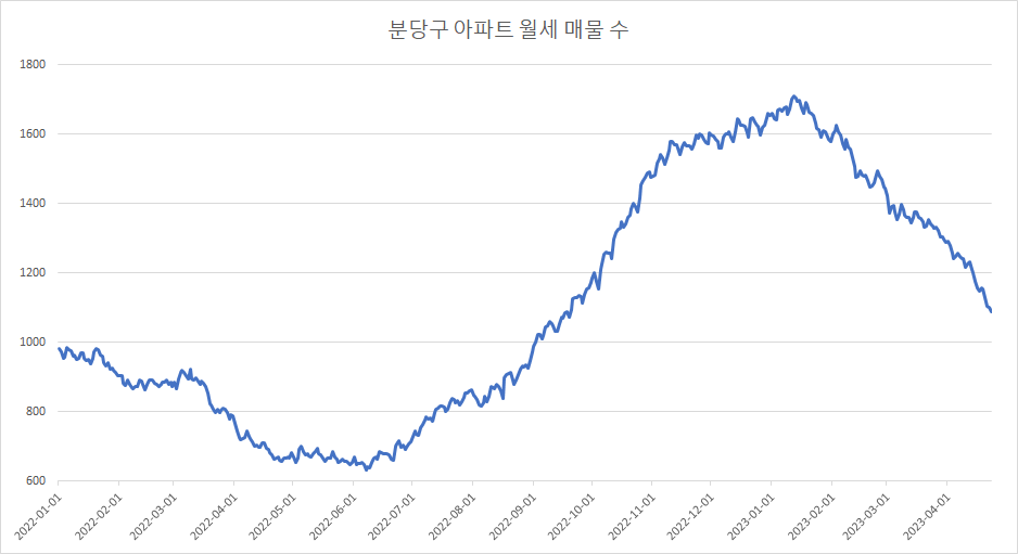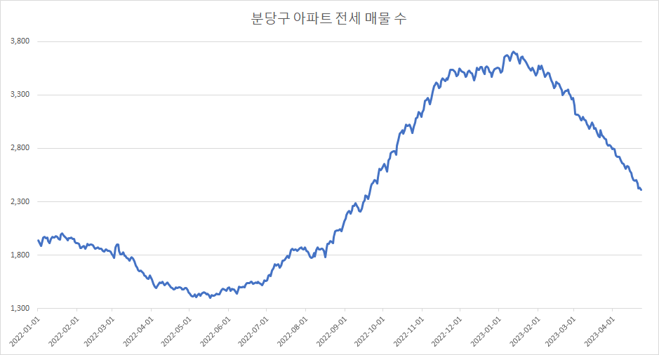 다음은 분당구 아파트 전세 매물 수 변화입니다.