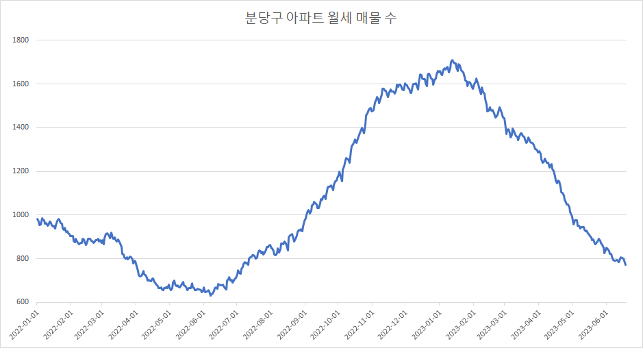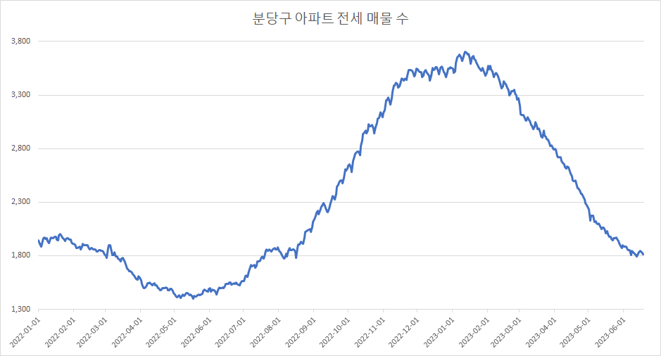 다음은 분당구아파트 전세 매물 수 변화를 체크하겠습니다.
