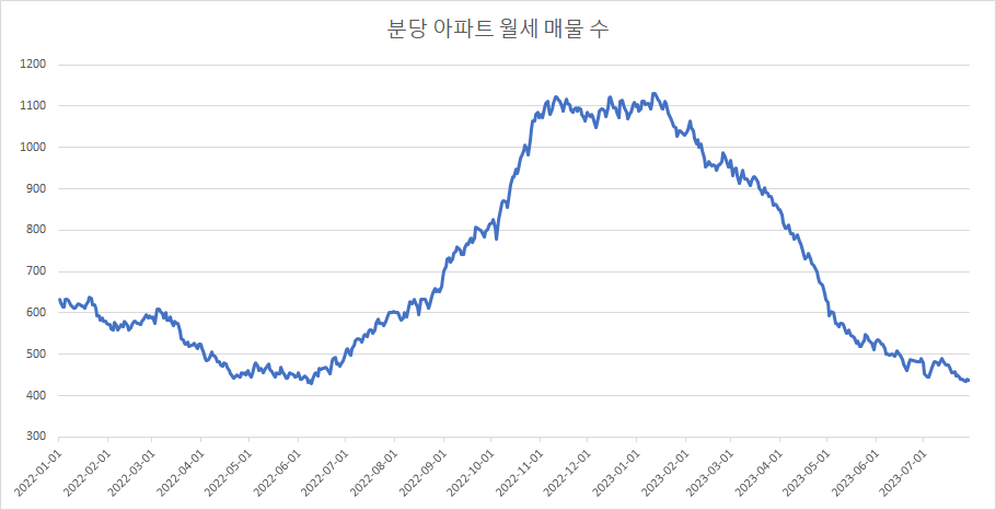 아래 그래프는 분당 아파트 매매 매물 수 변화입니다.