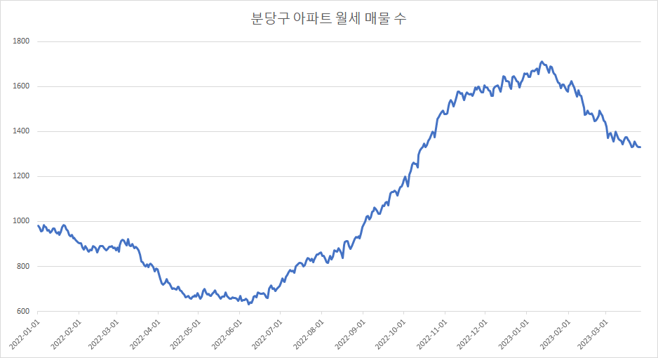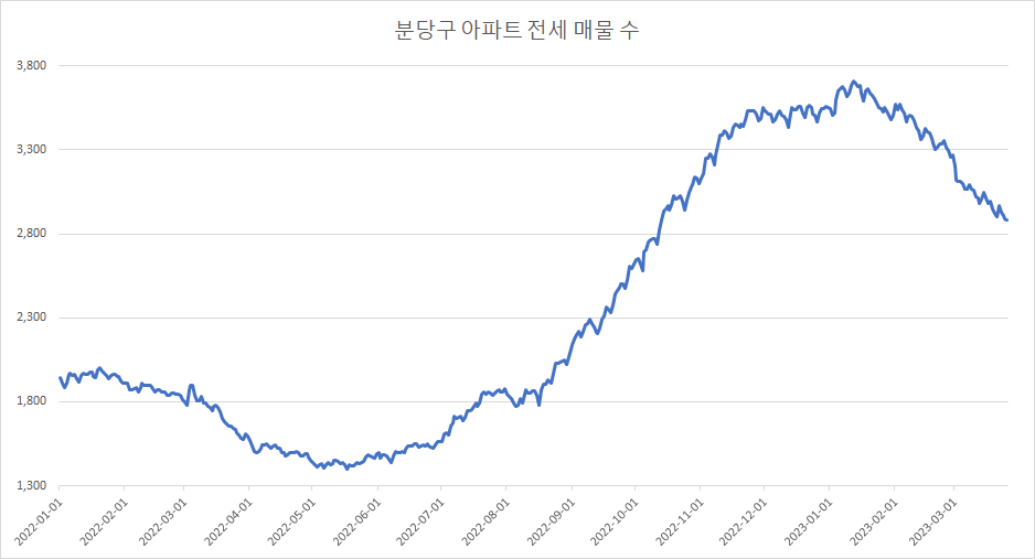 다음은 분당구 아파트 전세 매물 수 변화입니다.