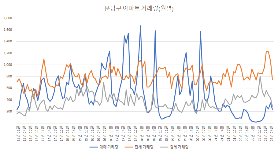 아래는 분당아파트 거래량입니다.