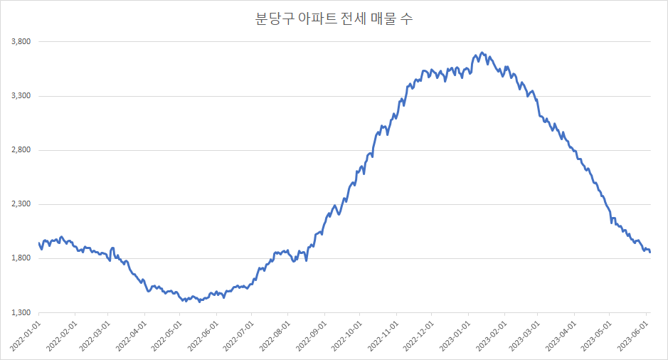 다음은 분당구 아파트 전세 매물 수 변화입니다.