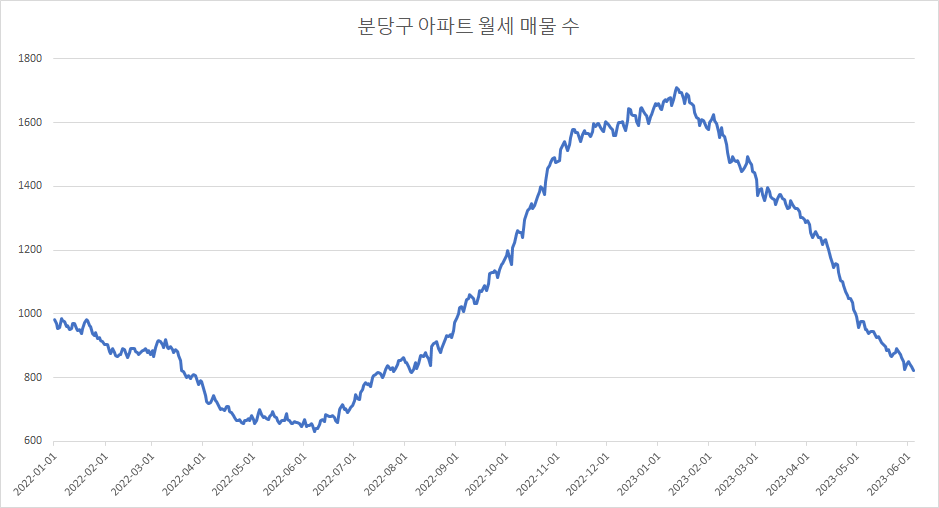 이제 분당아파트 매물 수 변화를 확인해 보겠습니다.