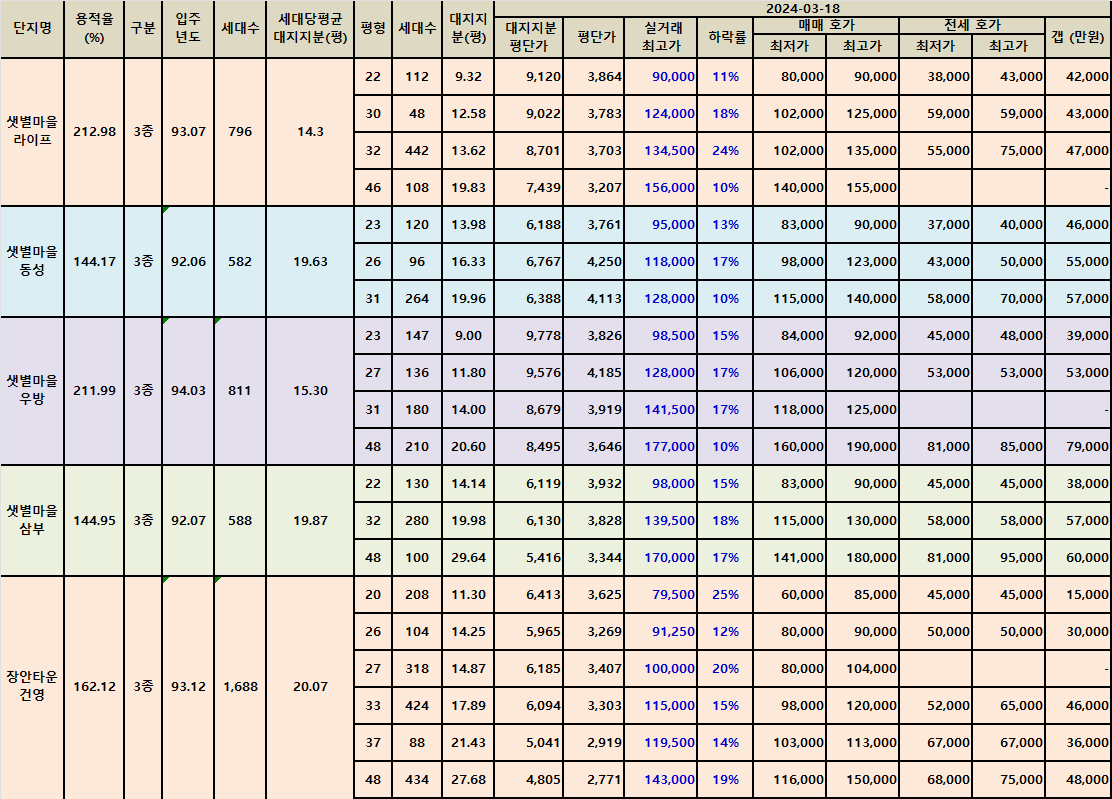 분당동 샛별마을아파트와 장안타운아파트 급매물 정리입니다.