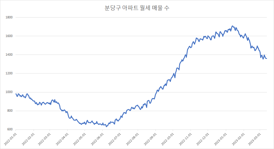 아래는 분당구아파트 월세 매물 수 추이입니다.