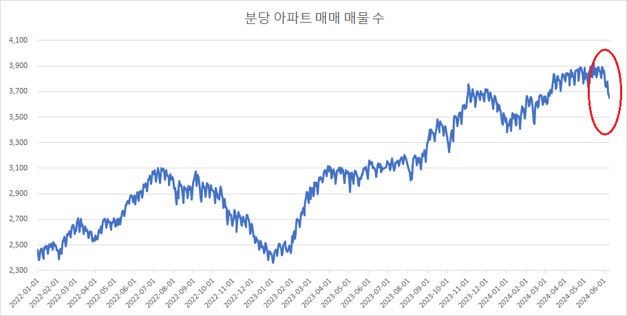 이제 분당구아파트 매물 수 변화를 확인하겠습니다.