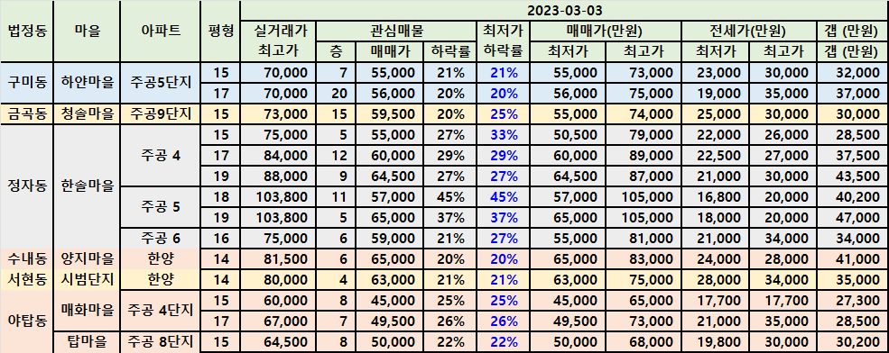 | 정자동 정든마을아파트 급매 202303 (0) | 2023.03.06 |