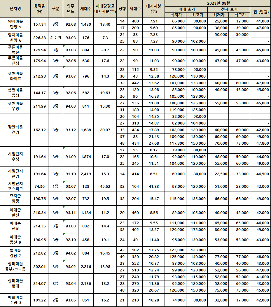 위 데이터는 거의 한 달을 걸려서 취합한 데이터이기 때문에 지금에는 존재하지 않는 매물이 정리되어 있을 수 있습니다.
