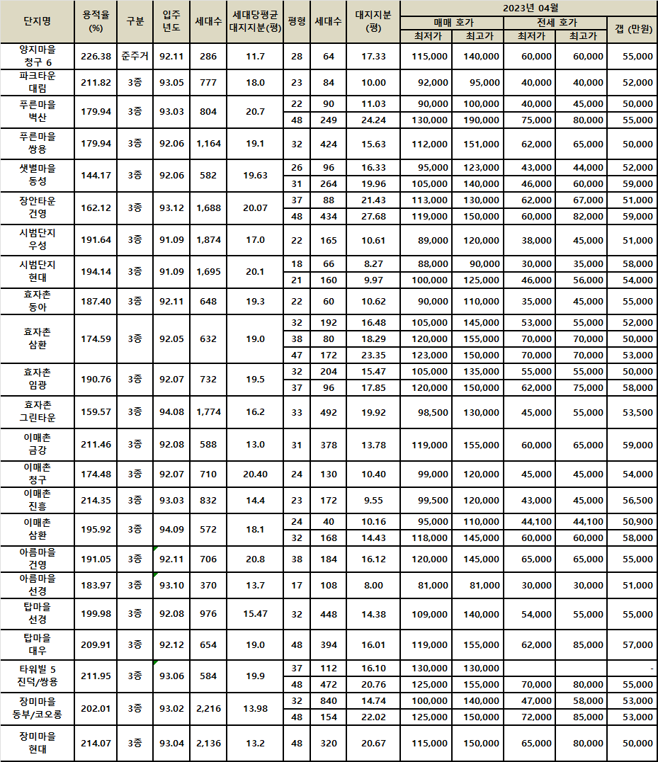 일일이 거론할 필요가 없는 단지도 다수 포함되어 있습니다.