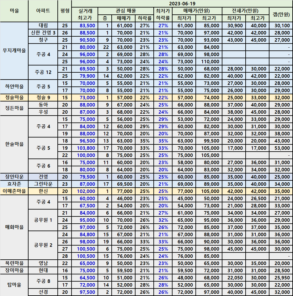 | 분당동아파트 급매 202306 (0) | 2023.06.19 |