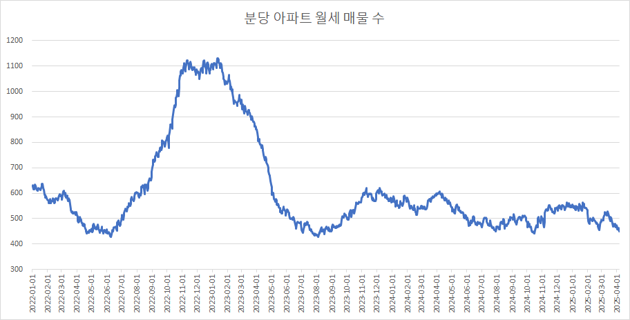 마지막으로, 분당구아파트 월세 매물 수 변화를 확인하겠습니다.