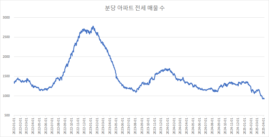 이제 분당구아파트 매물 수 변화를 확인하겠습니다.
