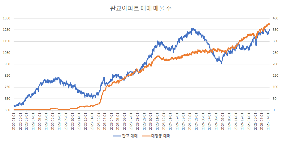 대장동아파트 매매 매물 수는 4주 연속 증가하고 있습니다.