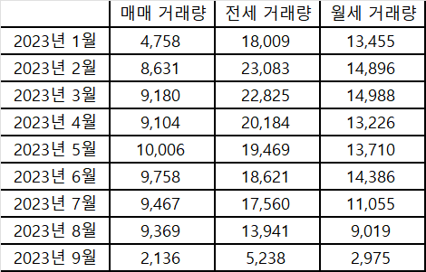 문제는 9월 아파트 매매 거래량 또한 아직까지 상당히 부진해 보여서 첫 주 반짝하고는 다시 시장이 쉬어가려는 듯합니다.