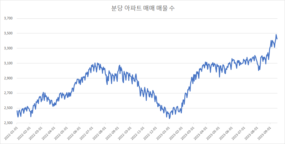 이제 분당아파트 매매 매물 수 변화를 확인하겠습니다.