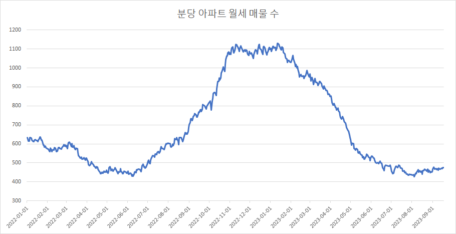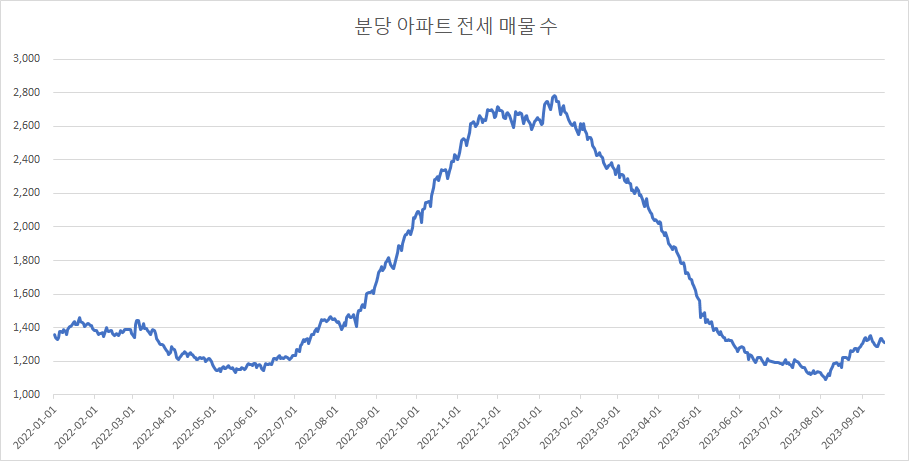 다음은 분당 아파트 전세 매물 수 변화입니다.
