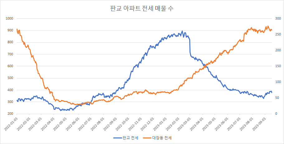 | 분당판교아파트 거래량 및 매물 수 변화 20231001 (0) | 2023.10.01 |