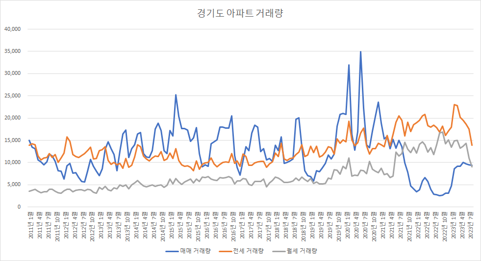 아래는 경기도 아파트 거래량입니다.
