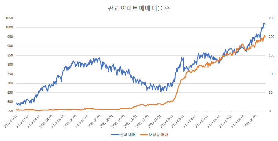 | 분당판교아파트 거래량 및 매물 수 변화 20231001 (0) | 2023.10.01 |