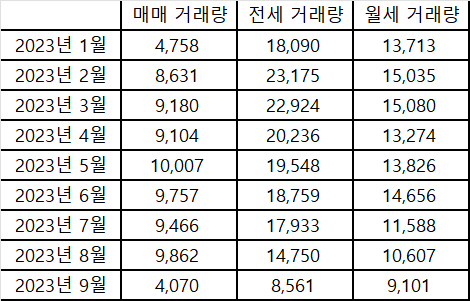 더욱 심각한 것은 9월 거래량인데, 현장에서는 9월이 8월보다는 매매가 더 활발하다고 느꼈으나 실제 데이터는 반대로 나오고 있습니다.