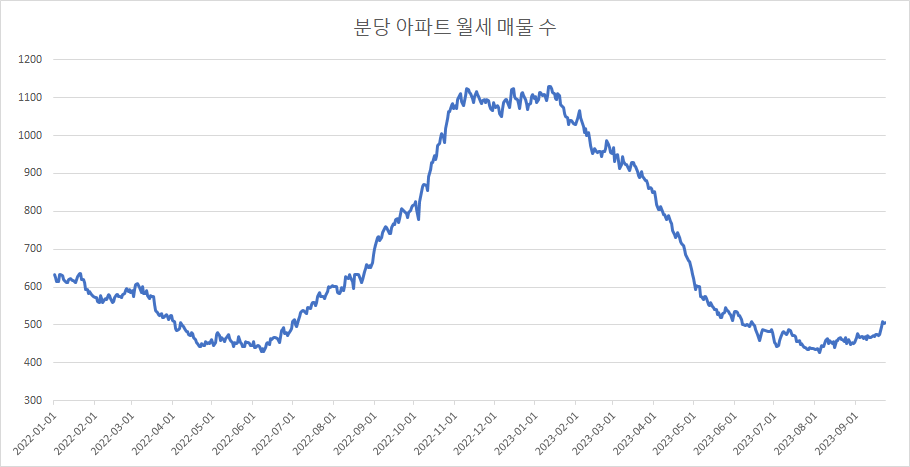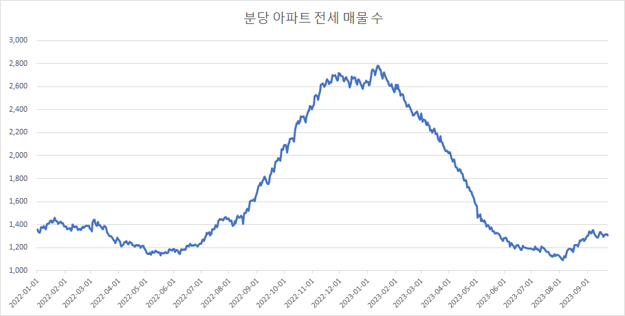 다음은 분당 아파트 전세 매물 수 변화입니다.