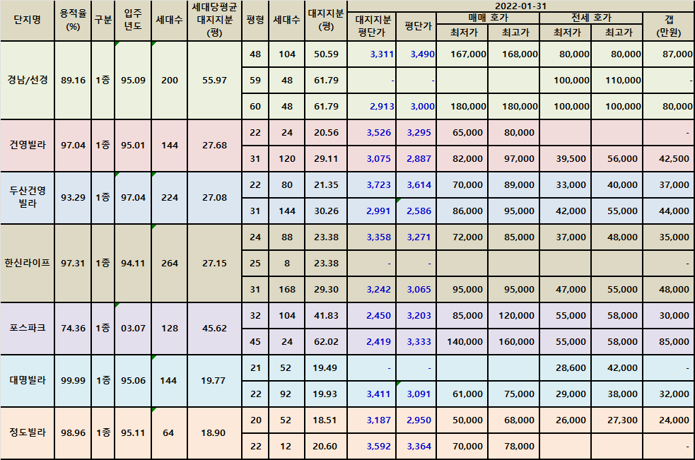분당의 단지형 빌라도 통상적으로 아파트와 그 흐름이 비슷했는데, 빌라도 매매 및 전세에서 수요의 움직임이 있는지 관심이 큰 상태에서 분당 단지형 빌라 매물을 정리하고 한 달 전과 매매 최저가 및 전세 최저가를 비교했습니다.