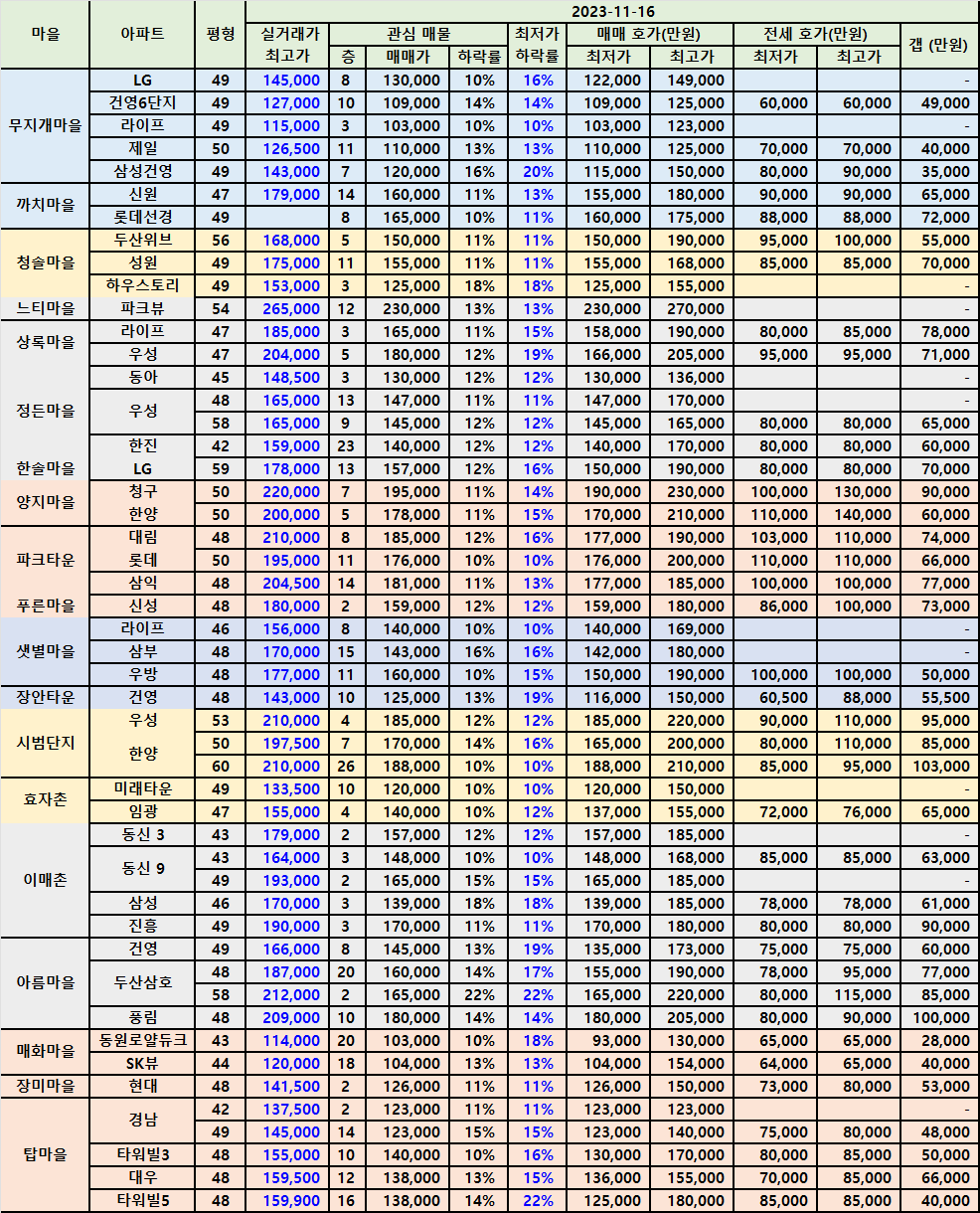 | 분당동 샛별마을과 장안타운 아파트 급매 202311 (0) | 2023.11.18 |