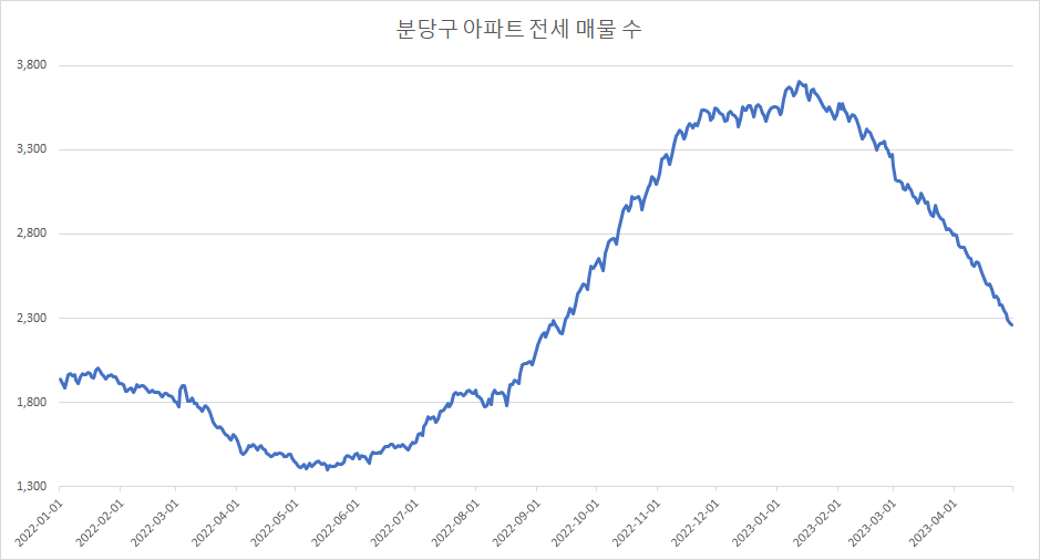 분당구아파트 전세 매물 수 변화