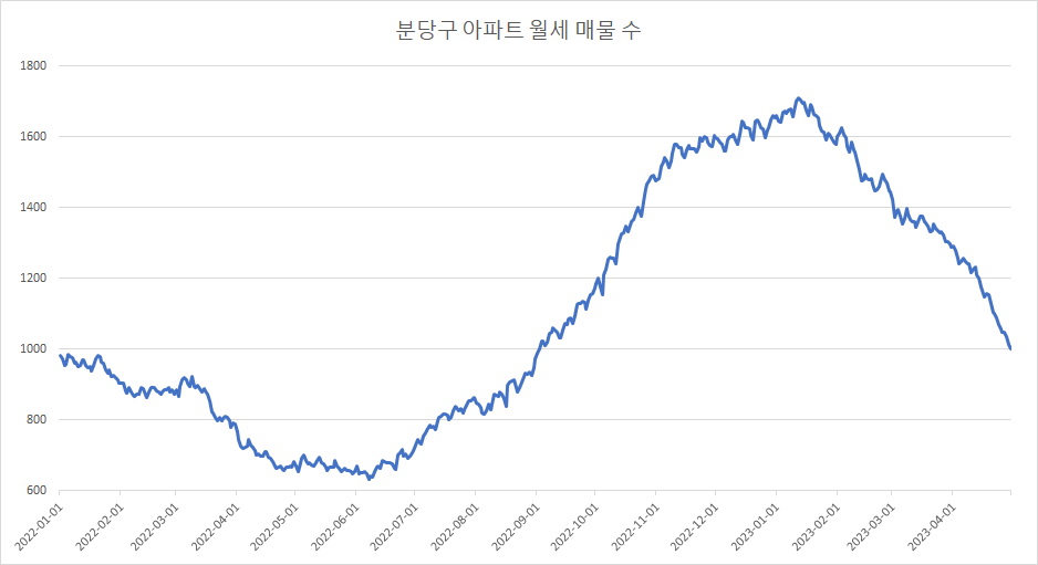 분당구아파트 월세 매물 수 변화