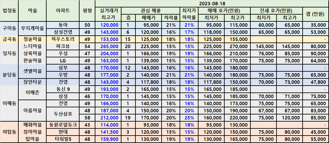 서현동 시범단지 아파트 급매 202308 (0) | 2023.08.21 |