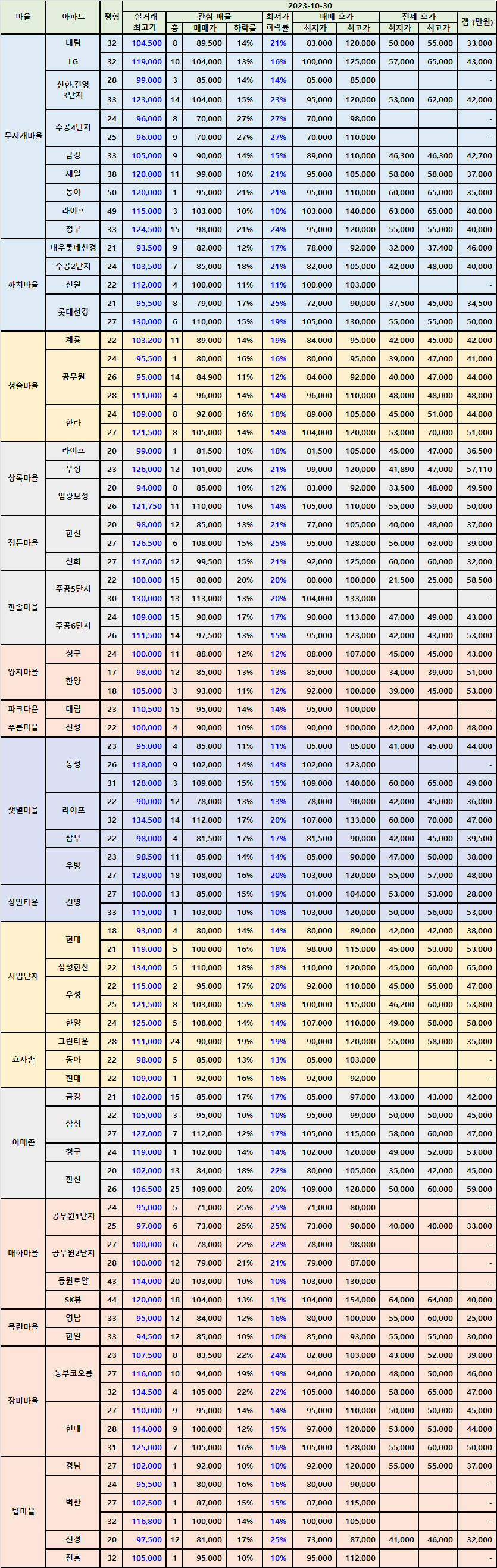 그러나 반대로 매매 최저가가 하락한 곳 또한 많았습니다.