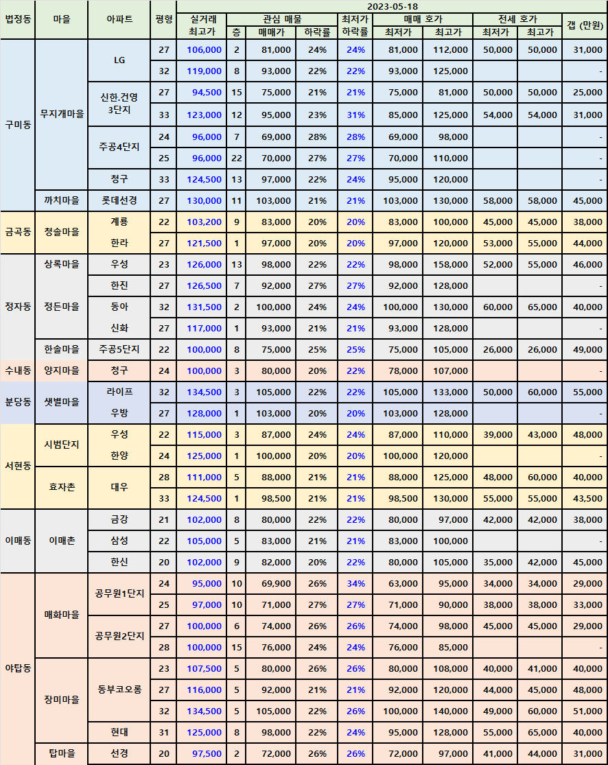 | 분당 서현동 시범단지아파트 급매 202305 (0) | 2023.05.19 |
