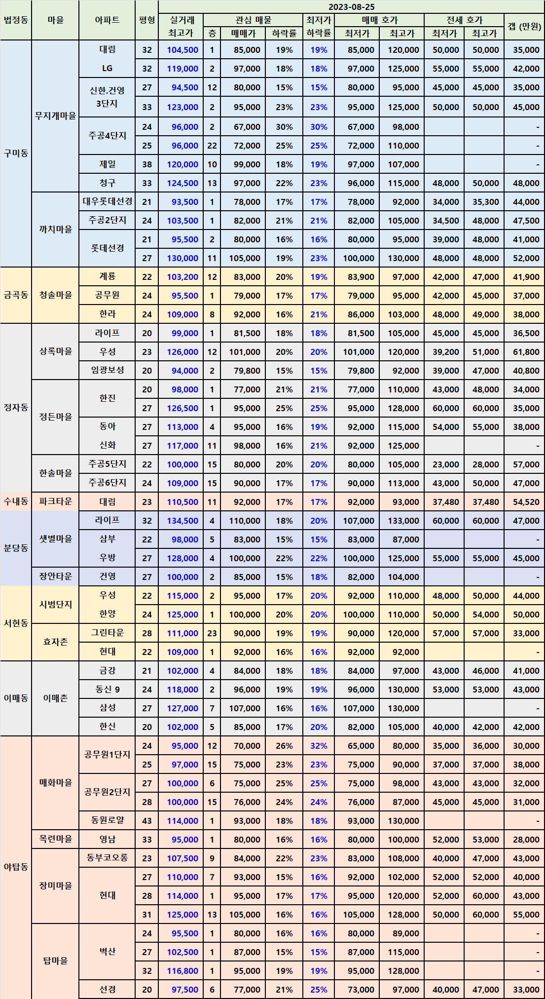 | 분당 아파트 7억대 급매물 정리 202308 (2) | 2023.08.23 |