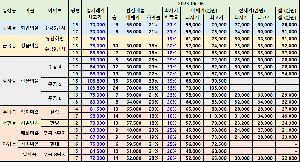 | 정자동 느티마을 & 상록마을아파트 급매 202306 (0) | 2023.06.07 |